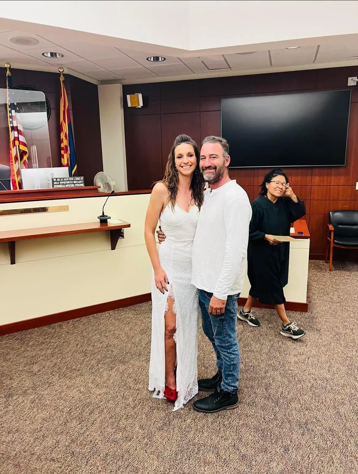 Client requested she not be in the courtroom and her husband be dressier